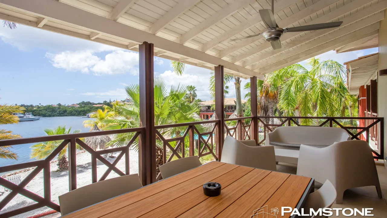 Spanish Water View Beach Resort , Brakkeput Abou Curaçao Particularly beautiful apartment located on the first floor in a safe resort, directly on a private beach Location Located in the quiet district of Brakkeput Abou, a few minutes away by car to Jan Thiel Beach, you will find this great apartment located within the safe walls of the Spanish Water view resort, right on the Spanish water. The apartment is part of a building with 4 residential units. At the beautifully situated beach resort you have access to a quiet swimming pool and private beach and an optimal safe environment since the resort is completely walled, equipped with camera security and security personnel present. There are parking spaces for residents at the resort. The apartment The bright apartment located on the first floor has a spacious, covered outdoor terrace that integrates very nicely with the living room through sliding / pocket doors. The whole is located directly on the private beach and surrounded by a very beautiful, tropical garden and has a view of the Spanish water. The apartment is always equipped with sufficient ventilation due to the continuous sea breeze that cools the house. The house is luxuriously equipped with a modern kitchen, including a ceramic hob, dishwasher and built-in oven. The open kitchen is directly connected to the comfortable living room. Furthermore, the apartment has two bedrooms, two bathrooms, a separate guest toilet and a laundry room. The bedrooms, as well as the living room, have a converter air conditioning. All in all a fantastic property in an excellent location, located a short distance from all desirable amenities. We therefore cordially invite you to come and view this unique residential object with us. ---Inventory included---