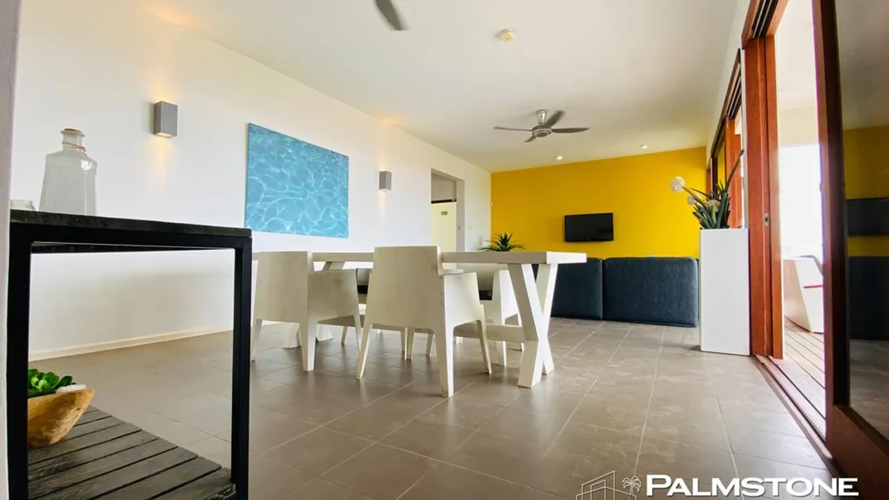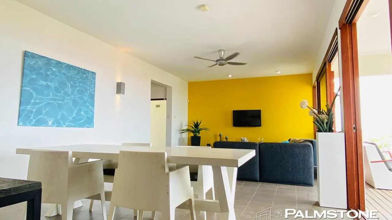 Luxurious, furnished 3 bedroom apartment overlooking the Caribbean Sea, Boca Gentil Beach Resort, Jan Thiel This amazing, contemporary apartment, located on the first floor, is located in the secure and prestigious beach resort "Boca Gentil", located directly on Jan Thiel Beach with its own facilities such as beach clubs, restaurants, spa, shops, gym and supermarket. The house has a master bedroom with private bathroom and private terrace and two separate guest bedrooms with a second bathroom and a separate guest toilet. The living room and kitchen are beautifully integrated with the covered outdoor terrace that offers a direct view of the sea. A quiet, spacious swimming pool, equipped with sunbeds and for shared use, is located right next to the building. Extremely secure and private, this property exudes luxury and fine craftsmanship - and is sure to be well received by the most discerning renter. The resident(s) have free access to Jan Thiel Beach. It is with great pleasure that we let you experience this residential gem for yourself. Rental price ANG 5,500 per month, including resort fee