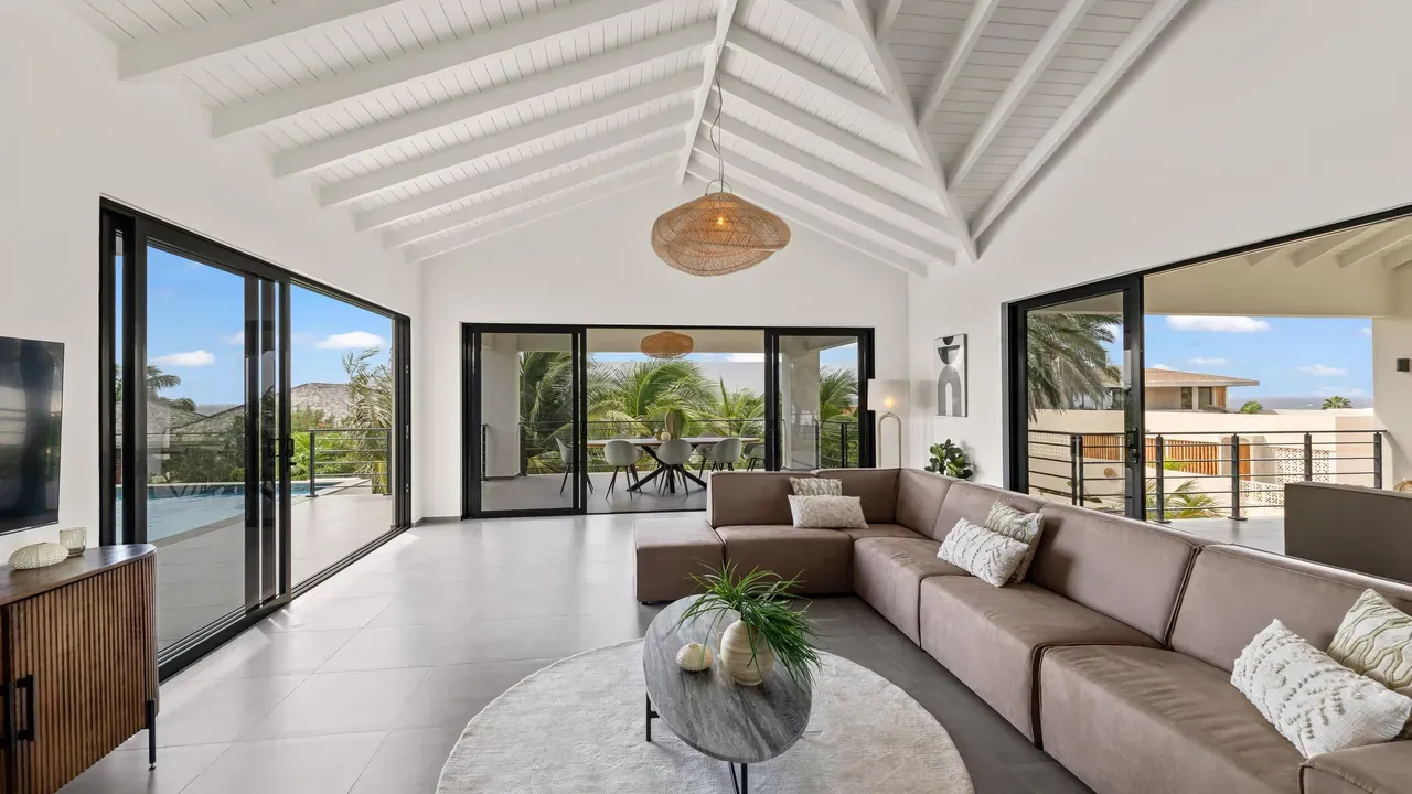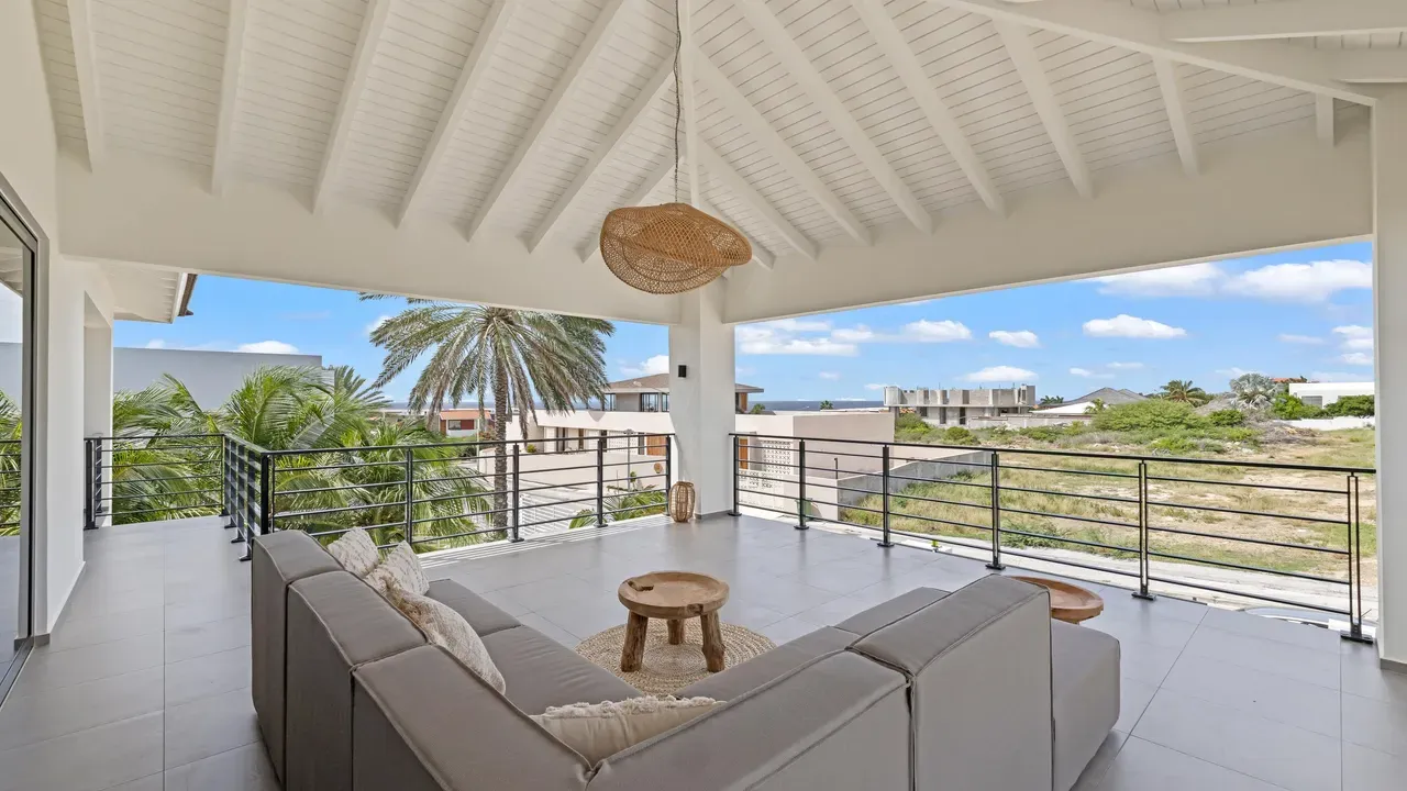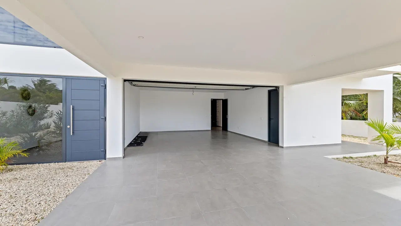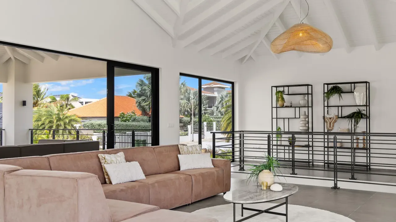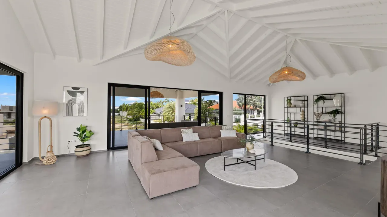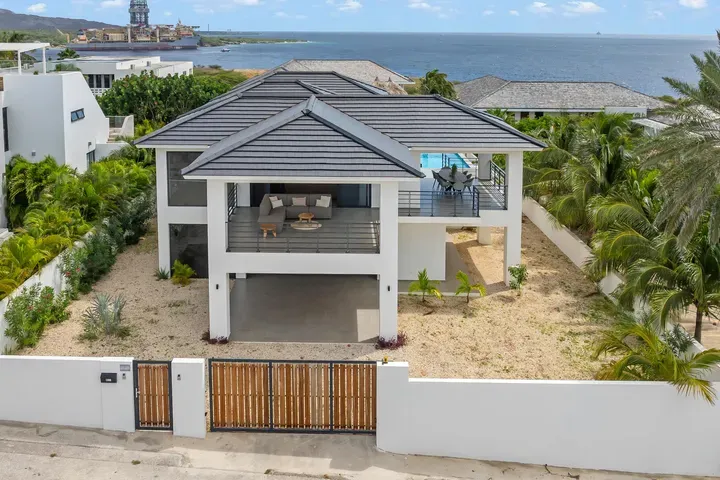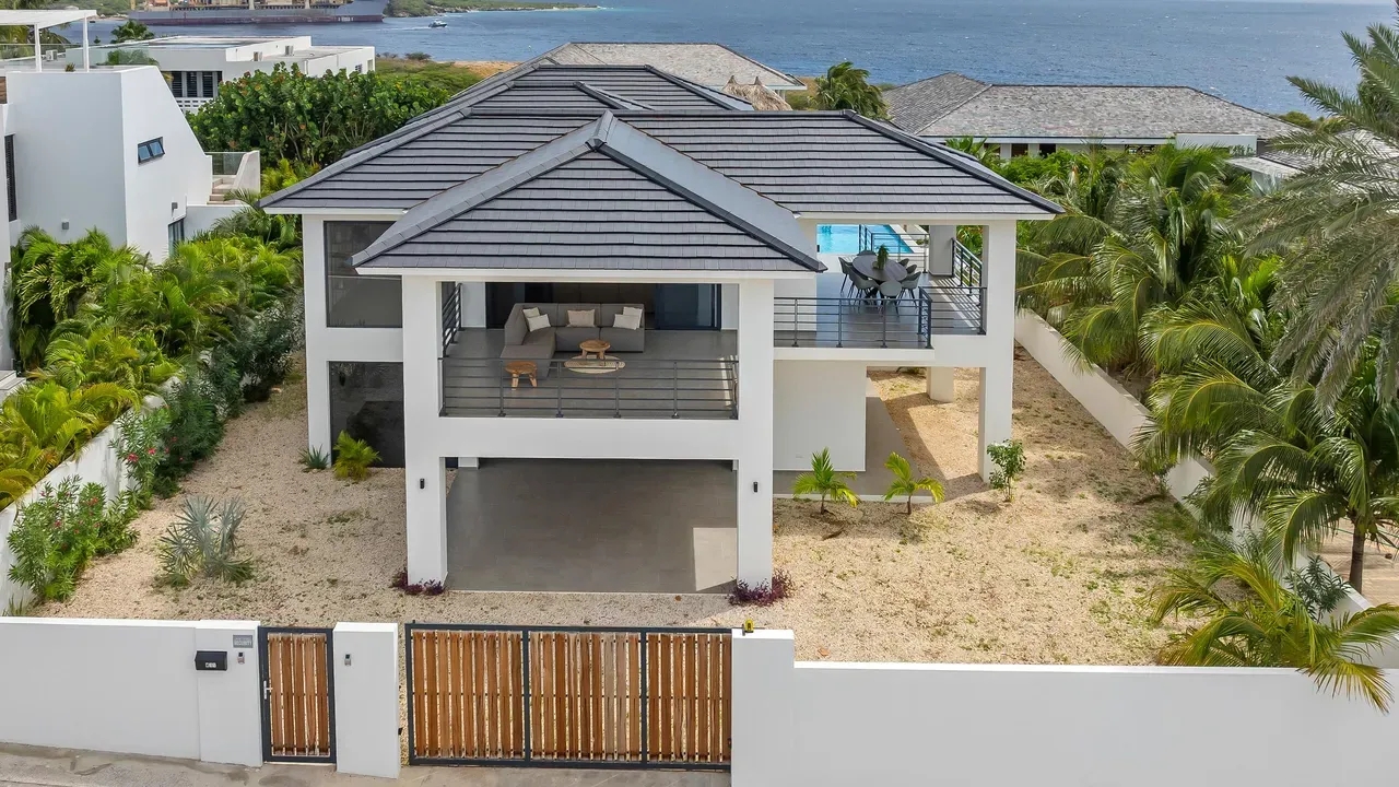 With exceptional precision and an impeccable sense of aesthetics, this villa in Vista Royal is celebrated as one of the most exquisitely designed masterpieces of today. The residence offers breathtaking views over the Caribbean Sea and the iconic Jan Thiel skyline. With this architectural triumph, Colombian architect Diego Hanao once again showcases his unparalleled signature style. Nestled along a quiet, distinguished street, the villa is crafted with materials of the highest caliber and adorned with bespoke finishes. The impressive tropical hardwood roof structure and expansive glass sliding doors bathe the interiors in natural light, creating an airy ambiance that seamlessly merges indoor and outdoor living. The villa features four bedrooms, including a lavish master suite, each accompanied by a luxuriously appointed en-suite bathroom and generous walk-in closets. The open floor plan flows effortlessly through the home's three primary spaces: the living area, the elegant gourmet kitchen, and the exclusive master suite. This harmonious layout is further enhanced by a grand chef’s kitchen equipped with premium appliances, a stunning infinity pool, an expansive entertainment area, a two-car indoor garage, and atmospheric LED lighting that beautifully accentuates the custom-designed balustrades. The garden has been designed and landscaped with meticulous care, forming a serene, lush oasis where exotic plantings and stately palms thrive in perfect harmony. Supported by an advanced automatic irrigation system, this verdant sanctuary remains in pristine condition throughout the year. This extraordinary villa has been conceived for the most discerning buyer—a rare fusion of design, craftsmanship, and location. We look forward to personally presenting this exceptional residential experience to you.