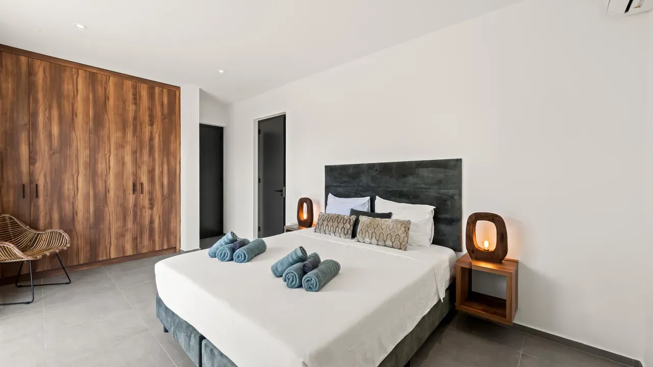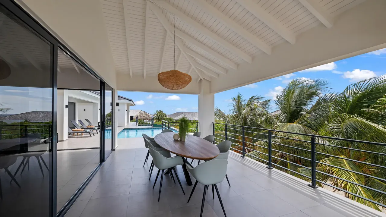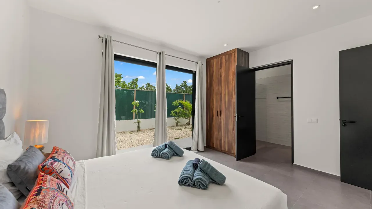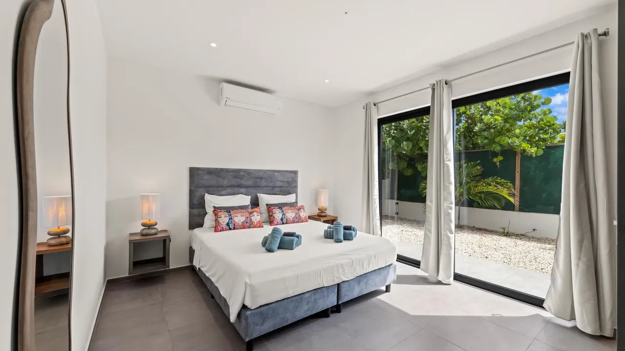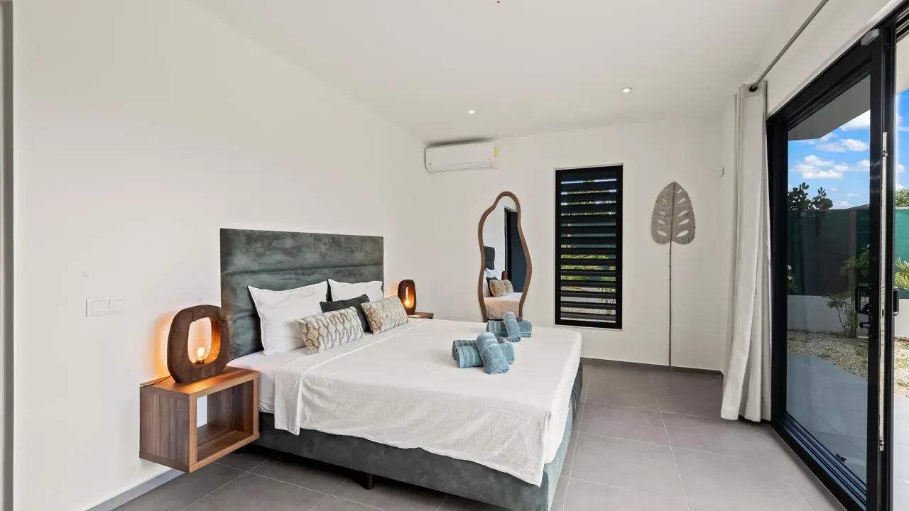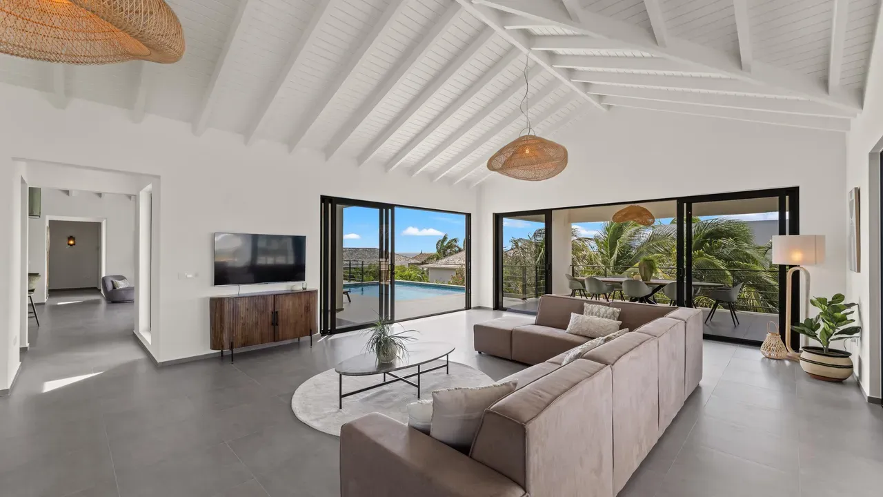 With exceptional precision and an impeccable sense of aesthetics, this villa in Vista Royal is celebrated as one of the most exquisitely designed masterpieces of today. The residence offers breathtaking views over the Caribbean Sea and the iconic Jan Thiel skyline. With this architectural triumph, Colombian architect Diego Hanao once again showcases his unparalleled signature style. Nestled along a quiet, distinguished street, the villa is crafted with materials of the highest caliber and adorned with bespoke finishes. The impressive tropical hardwood roof structure and expansive glass sliding doors bathe the interiors in natural light, creating an airy ambiance that seamlessly merges indoor and outdoor living. The villa features four bedrooms, including a lavish master suite, each accompanied by a luxuriously appointed en-suite bathroom and generous walk-in closets. The open floor plan flows effortlessly through the home's three primary spaces: the living area, the elegant gourmet kitchen, and the exclusive master suite. This harmonious layout is further enhanced by a grand chef’s kitchen equipped with premium appliances, a stunning infinity pool, an expansive entertainment area, a two-car indoor garage, and atmospheric LED lighting that beautifully accentuates the custom-designed balustrades. The garden has been designed and landscaped with meticulous care, forming a serene, lush oasis where exotic plantings and stately palms thrive in perfect harmony. Supported by an advanced automatic irrigation system, this verdant sanctuary remains in pristine condition throughout the year. This extraordinary villa has been conceived for the most discerning buyer—a rare fusion of design, craftsmanship, and location. We look forward to personally presenting this exceptional residential experience to you.