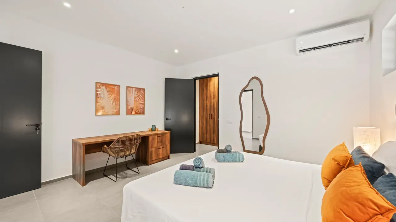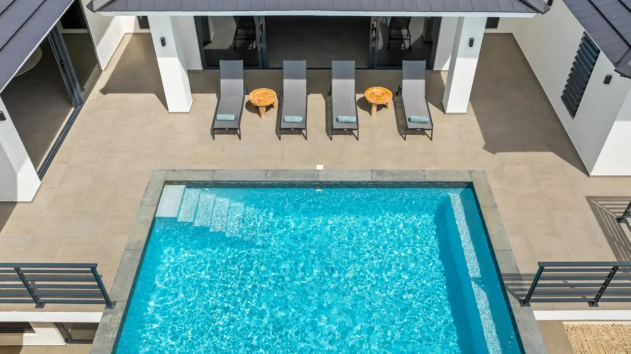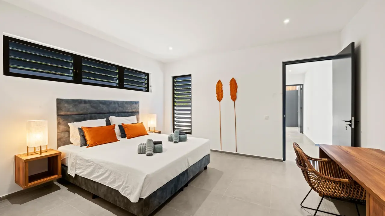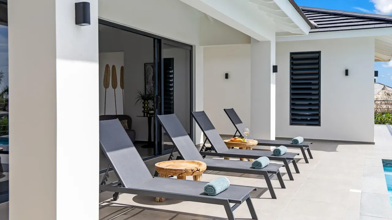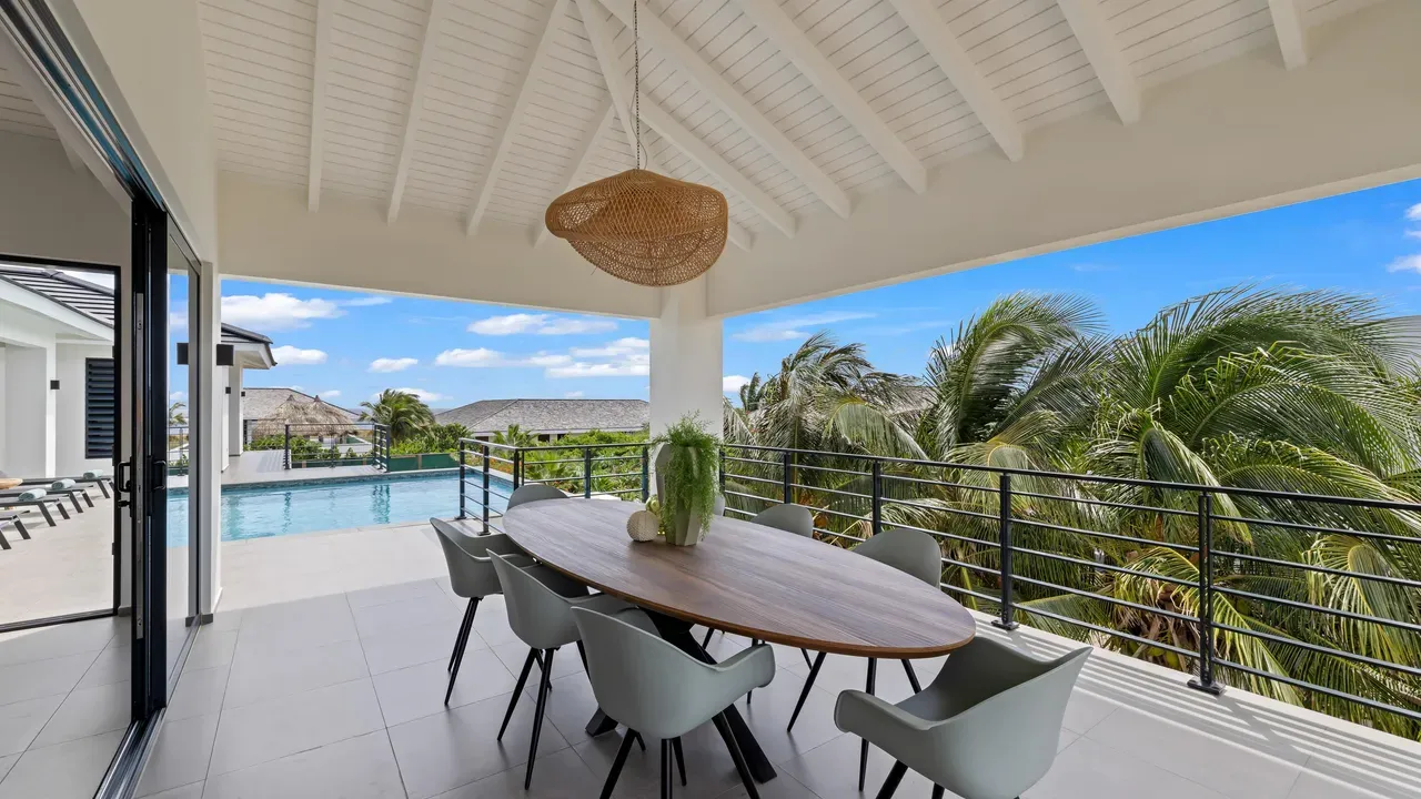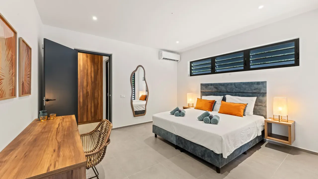 With exceptional precision and an impeccable sense of aesthetics, this villa in Vista Royal is celebrated as one of the most exquisitely designed masterpieces of today. The residence offers breathtaking views over the Caribbean Sea and the iconic Jan Thiel skyline. With this architectural triumph, Colombian architect Diego Hanao once again showcases his unparalleled signature style. Nestled along a quiet, distinguished street, the villa is crafted with materials of the highest caliber and adorned with bespoke finishes. The impressive tropical hardwood roof structure and expansive glass sliding doors bathe the interiors in natural light, creating an airy ambiance that seamlessly merges indoor and outdoor living. The villa features four bedrooms, including a lavish master suite, each accompanied by a luxuriously appointed en-suite bathroom and generous walk-in closets. The open floor plan flows effortlessly through the home's three primary spaces: the living area, the elegant gourmet kitchen, and the exclusive master suite. This harmonious layout is further enhanced by a grand chef’s kitchen equipped with premium appliances, a stunning infinity pool, an expansive entertainment area, a two-car indoor garage, and atmospheric LED lighting that beautifully accentuates the custom-designed balustrades. The garden has been designed and landscaped with meticulous care, forming a serene, lush oasis where exotic plantings and stately palms thrive in perfect harmony. Supported by an advanced automatic irrigation system, this verdant sanctuary remains in pristine condition throughout the year. This extraordinary villa has been conceived for the most discerning buyer—a rare fusion of design, craftsmanship, and location. We look forward to personally presenting this exceptional residential experience to you.