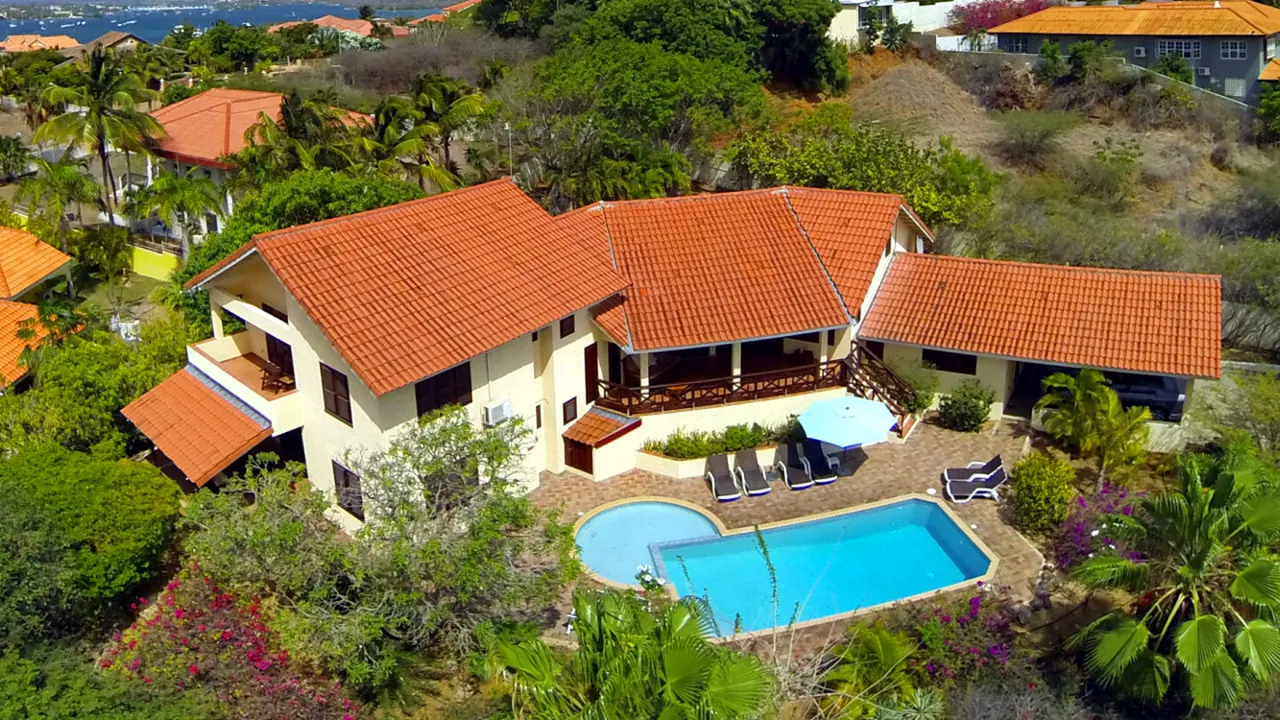 EXCLUSIVE VILLA FOR RENT | 5 BEDROOMS | 3 BATHROOMS | PRIVATE POOL Nestled in the heart of a lush tropical paradise, this magnificent villa exudes an irresistible charm. Surrounded by swaying palm trees and the soothing ocean breeze, it offers an unparalleled retreat of luxury and tranquility. Step into a world where elegance meets tropical living, where every detail is thoughtfully designed to delight the senses. With its sophisticated interior, private swimming pool, and breathtaking views, this villa promises an unforgettable escape—where indulgence knows no bounds, and time seems to stand still. Welcome to your private piece of paradise! Prime Location – Jan Thiel Centrally located on the edge of one of the island’s most sought-after villa neighborhoods, Jan Thiel, this property offers the perfect balance of privacy and convenience. Caracasbaai Beach and the renowned Jan Thiel Beach are just a short walk away, placing pristine waters and vibrant beach life within easy reach. Spacious & Luxurious Living The villa, including a fully integrated apartment, boasts five elegantly furnished bedrooms, each equipped with air conditioning, three modern bathrooms, and two fully equipped kitchens. The main villa features a stylish living room and a dedicated entertainment space, while the apartment has its own cozy private living area. Expansive Tropical Garden & Private Pool Set on an impressive 1,700 m² plot, the villa is surrounded by a beautifully landscaped garden that ensures absolute privacy thanks to its enclosed design. The lush outdoor space is adorned with coconut palms, mango trees, pomegranate trees, and vibrant bougainvillea—all bearing fresh fruit for you to enjoy. These tropical delights also attract a variety of exotic birds, including sugar birds, troupials, and hummingbirds, enhancing the villa’s enchanting atmosphere. The outdoor area features two connected swimming pools—a children’s pool and a larger pool, making it ideal for families. Three covered terraces offer spectacular views of the garden and pool area, with the front terrace overlooking the tropical greenery and the rear terrace providing a stunning view of the private backyard oasis. Elevated on a hill, the villa ensures complete seclusion and tranquility. Sustainable & Energy-Efficient This eco-friendly villa is equipped with solar panels and a deep well, making it both luxurious and energy-efficient. Availability & Furnishing Options Available from September 1, 2025 Offered fully furnished or unfurnished Rental price: ANG 6.900 each month excluding garden and pool maintenance. This extraordinary villa is a rare find—schedule a viewing today and experience island living at its finest!