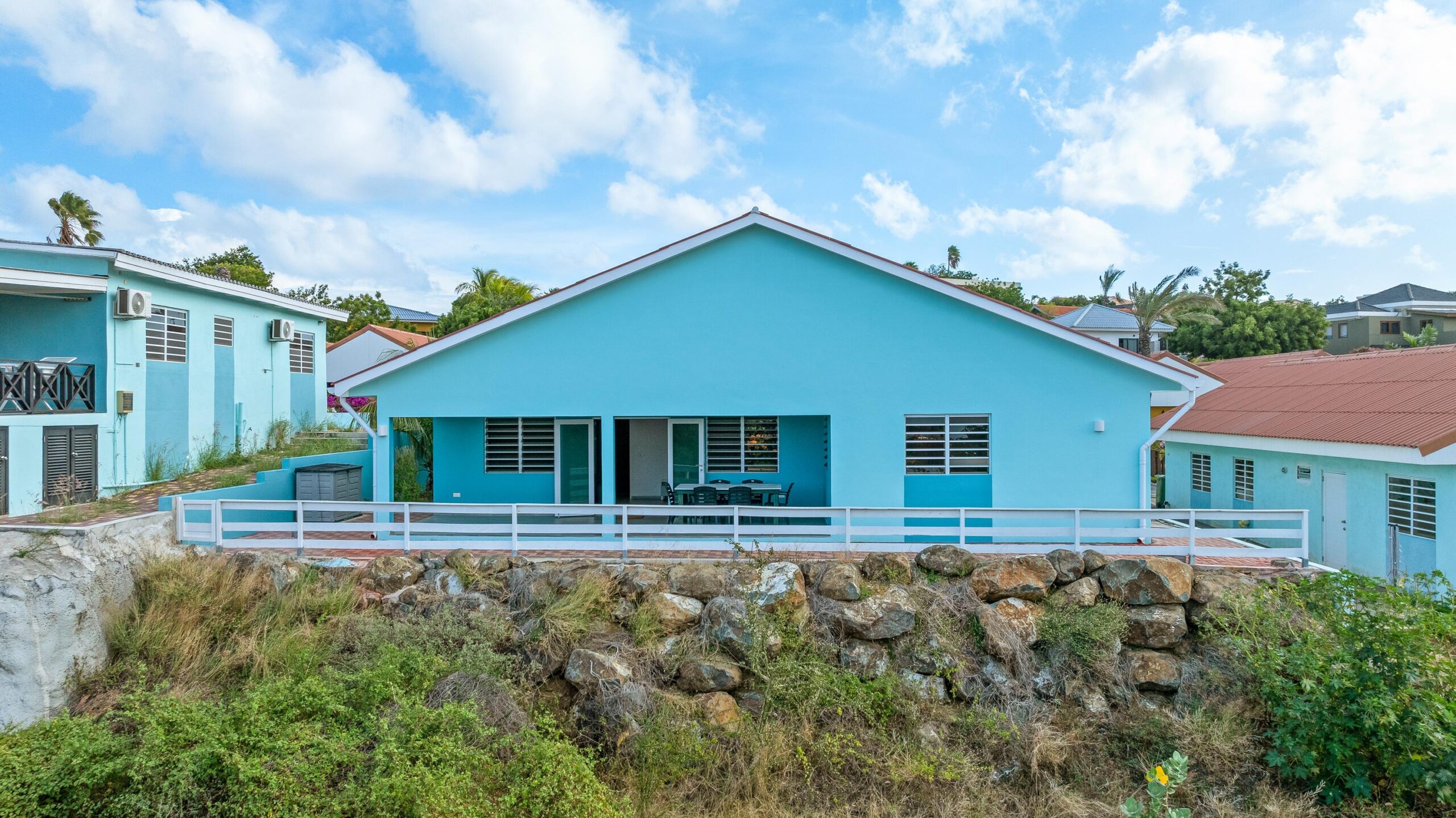In de geliefde, centraal gelegen en hoger gelegen woonwijk Bottelier – perfect gepositioneerd tussen Mambo Beach en Jan Thiel Beach – bevindt zich deze schitterende, vrijstaande villa met drie slaapkamers. De villa is gelegen binnen het beveiligde en besloten Easthill Resort, een kleinschalig en exclusief resort dat rust, comfort en veiligheid biedt.