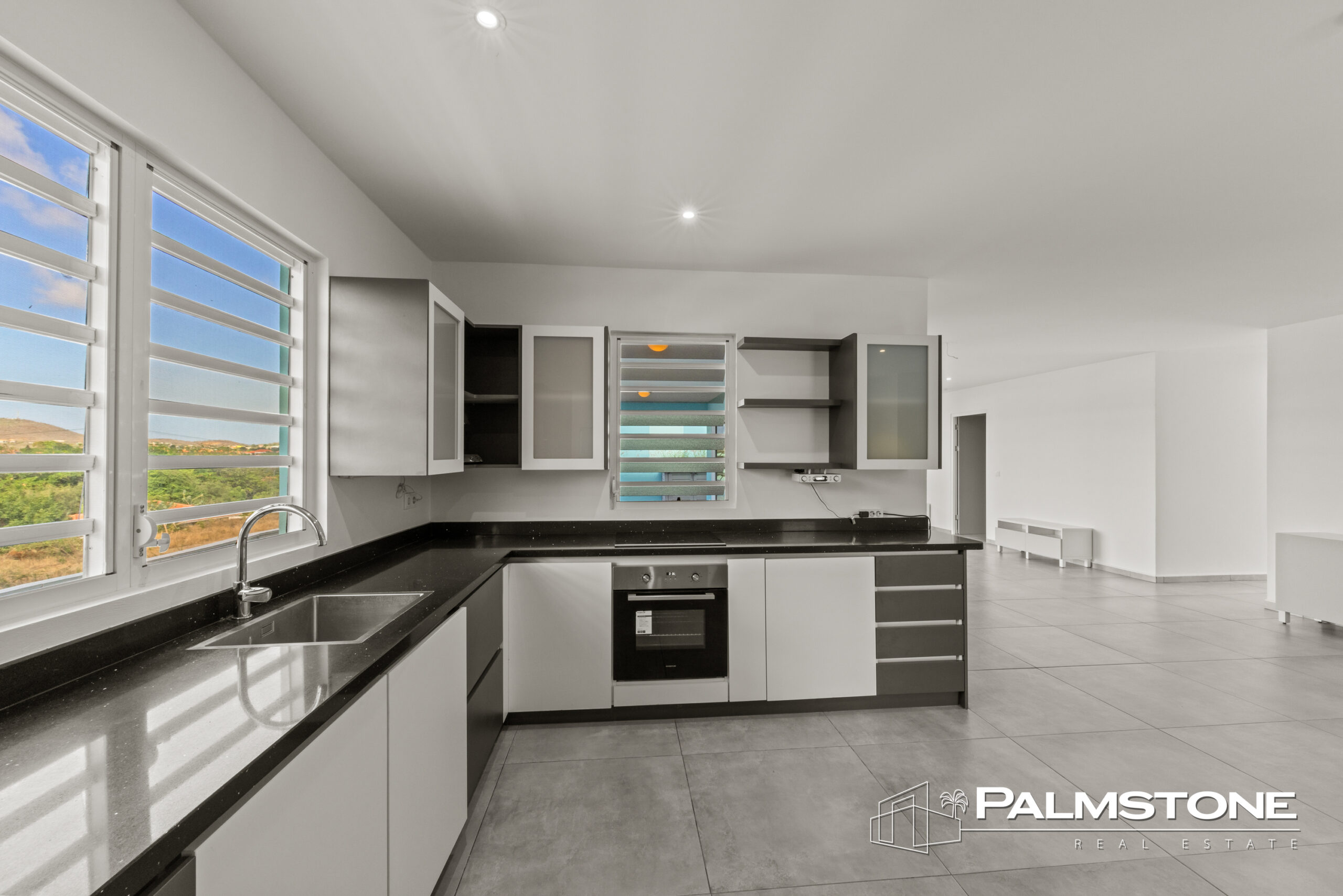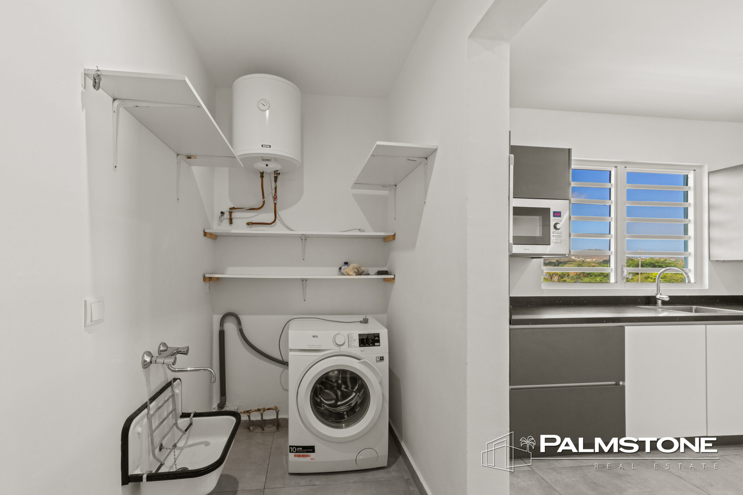 De open keuken is modern ingericht en van alle gemakken voorzien – perfect voor zowel dagelijks gebruik als voor het ontvangen van gasten. Aansluitend vindt u een praktische wasruimte. De vele shutterramen zorgen voor maximale ventilatie en een optimale verbinding tussen binnen en buiten.