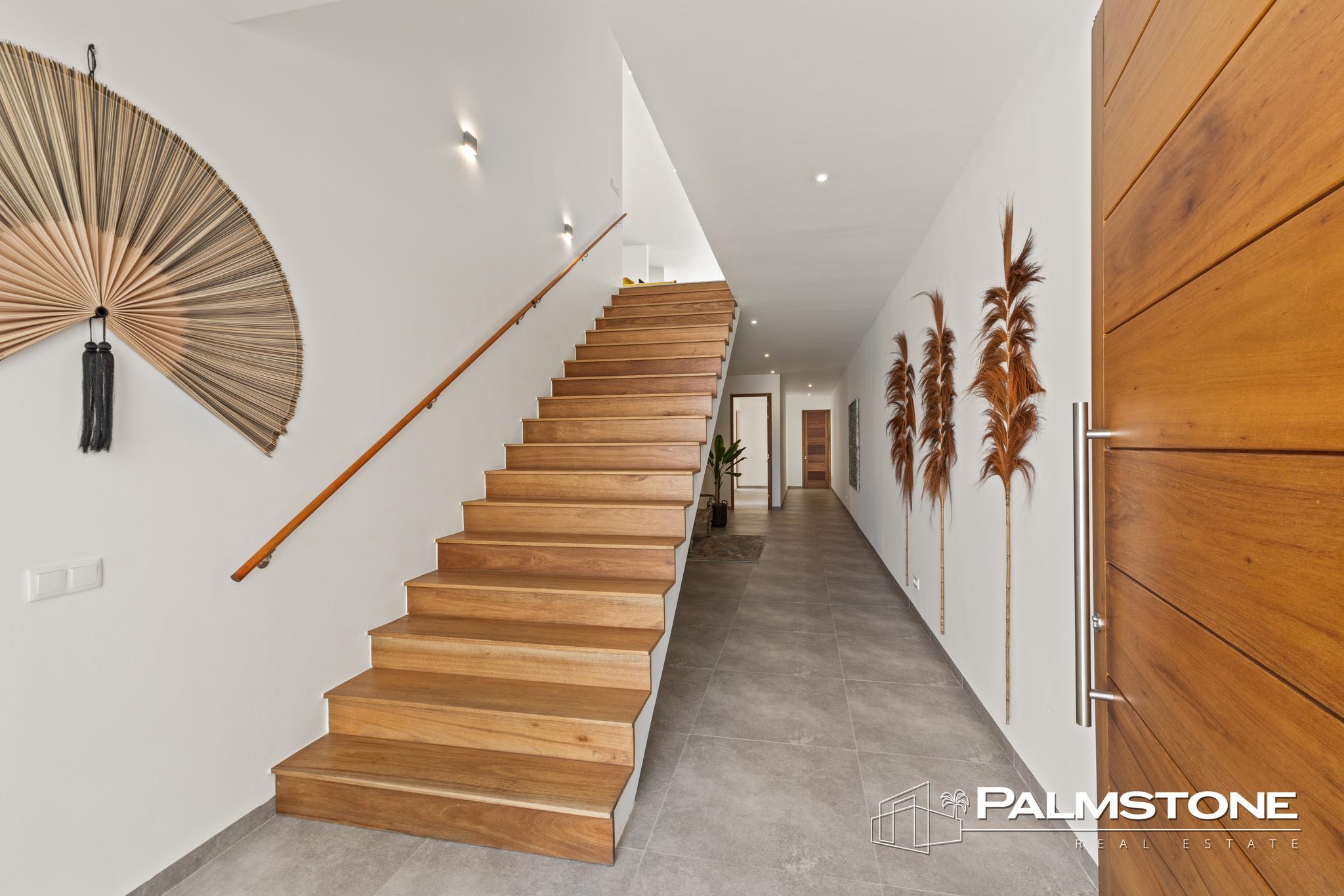 De woning is royaal opgezet en tot in de perfectie afgewerkt met hoogwaardige, duurzame materialen. Grote raampartijen, hoge plafonds en een vloeiende overgang tussen binnen en buiten zorgen voor een gevoel van licht, ruimte en openheid, terwijl een verkoelende bries de woning een natuurlijke koelte geeft. Een elegante porch op de eerste verdieping omlijst de woning en nodigt uit tot een wandeling rondom het huis, waarbij elk moment van de dag een ander uitzicht biedt – van de zachte ochtendzon tot de gouden gloed van de ondergaande zon boven zee.